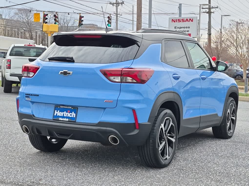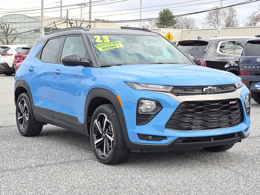 SUN AND LIFTGATE PACKAGE includes (C3U) power, dual-pane, panoramic sunroof and (TC2) power, programmable hands-free liftgate with LED logo projection, TECHNOLOGY PACKAGE includes (IOS) Chevrolet Infotainment 3 Plus system, (U2L) HD Radio, SiriusXM with 360L, (UQA) Bose premium 7-speaker system, (MCR) memory card receptacle, (K4C) Wireless Charging, (KSG) Adaptive Cruise Control, (UVB) HD Rear Vision Camera, (UDD) enhanced, 4.2 diagonal multi-color display Driver Information Center and (T4L) LED headlamps, CONVENIENCE PACKAGE includes (C68) automatic climate control air conditioning, (UIJ) 8 diagonal color touchscreen display, (USS) one type-A and one type-C charging only USB ports, (KI6) 120-volt power outlet, (DD8) inside rearview auto-dimming mirror and (DMS) driver and front passenger illuminated vanity mirrors, covered, sliding visors, CONFIDENCE II PACKAGE includes (UD7) Rear Park Assist Beginning with start of production through November 28, 2022, vehicles will be forced to include (00Y) Not Equipped with Rear Park Assist, which removes Rear Park Assist. See dealer for details or the window label for the features on a specific vehicle. Beginning December 26, 2022, certain vehicles will be forced to include (060) Not Equipped with Rear Park Assist, which removes Rear Park Assist. Does not include later dealer retrofit. See dealer for details or the window label for the features on a specific vehicle.), AUDIO SYSTEM, CHEVROLET INFOTAINMENT 3 PLUS SYSTEM 8 diagonal HD color touchscreen, AM/FM stereo, Bluetooth® audio streaming for 2 active devices, Apple CarPlay® and Android Auto® capable, voice recognition, in-vehicle apps, cloud connected personalization for select infotainment and vehicle settings. ENGINE, ECOTEC 1.3L I3 TURBO DOHC SIDI WITH VARIABLE VALVE TIMING (VVT) (155 hp [115 kW] @ 5600 rpm, 174 lb-ft torque [236 N-m] @ 1600 rpm) (STD), TRANSMISSION, 9-SPEED AUTOMATIC (STD). Chevrolet RS with Fountain Blue exterior and Jet Black with Red accents interior features a 3 Cylinder Engine with 155 HP at 5600 RPM*.